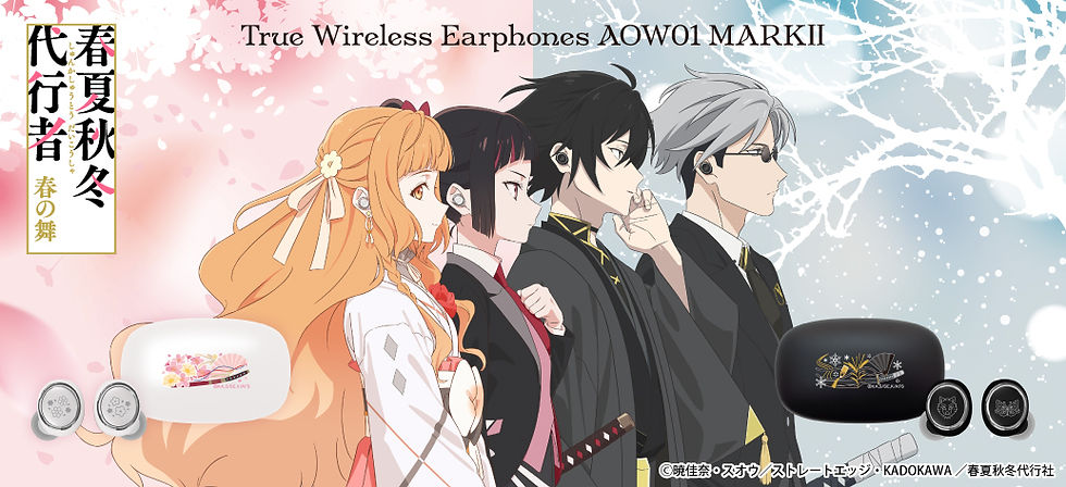 本コラボレーションモデルは「朝凪海」「天海夕」「新田新奈」3モード搭載の1モデル。作品タイトルとモチーフを充電ケースと左右ハウジングプレートに配置。音声ガイダンスは「朝凪海」「天海夕」「新田新奈」の新規録り下ろしボイスを搭載し、タップにてキャラクターの切り替えが可能なモードチェンジ仕様となっております。電源オンやオフ、ペアリング時やタップ音、ノイズキャンセリングモード時等、それぞれ計25ワードのボイスを楽しめます。パッケージは描き下ろしイラストデザインとなっております。
