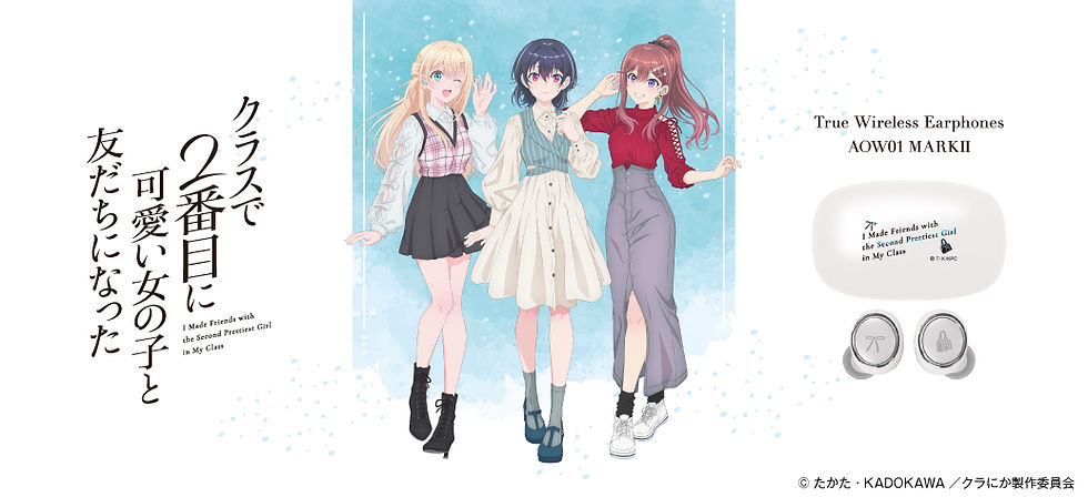 オンキヨー株式会社(所在地:大阪府大阪市、代表取締役社長:大朏 宗徳)は、最新機種の完全ワイヤレスイヤホン「AOW01 MARKⅡ」とのTVアニメ 『クラスで2番目に可愛い女の子と友だちになった※1』コラボレーションモデルを受注販売致します。